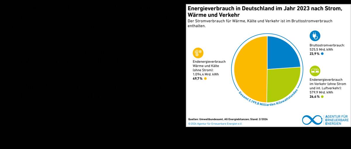 In Deutschland entfallen laut Umweltbundesamt (2024) etwa 50% des Endenergieverbrauchs auf Wärme und Kälte.